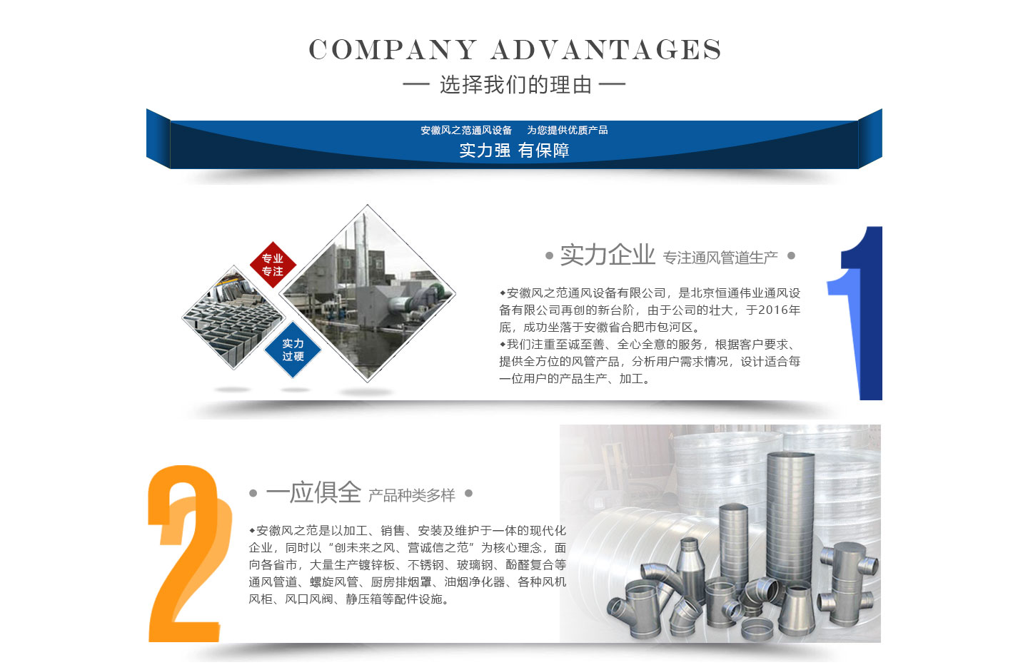 安徽風(fēng)之范通風(fēng)設(shè)備有限公司,是北京恒通偉業(yè)通風(fēng)設(shè)備有限公司再創(chuàng)的新臺階,多年來,公司員工憑著“誠信敬業(yè)、團(tuán)結(jié)拼搏、勇于開拓、務(wù)實進(jìn)取”的企業(yè)精神,先后承接了多項重點工程項目,使公司健康穩(wěn)步發(fā)展。現(xiàn)由于公司的壯大,業(yè)務(wù)的拓展,又于2016年底,成功坐落于安徽省合肥市包河區(qū)。本公司生產(chǎn)設(shè)備精良,技術(shù)力量雄厚,質(zhì)保體系完善!讓用戶體驗到,貼心的服務(wù),無憂的售后!風(fēng)之范是以加工、銷售、安裝及維護(hù)于一體的現(xiàn)代化企業(yè),同時以“創(chuàng)未來之風(fēng)、營誠信之范”為核心理念,面向全國各省市,大量生產(chǎn)鍍鋅板、不銹鋼、玻璃鋼、酚醛復(fù)合等通風(fēng)管道、螺旋風(fēng)管、廚房排煙罩、油煙凈化器、各種風(fēng)機風(fēng)柜、風(fēng)口風(fēng)閥、靜壓箱等配件設(shè)施。廣泛承接商場、工廠、酒店、寫字樓、地下室等,消防排煙工程、除塵凈化工程、室內(nèi)通風(fēng)工程、暖通空調(diào)工程、廚房排煙凈化工程。我們力求上進(jìn),追求,歡迎各界人士技術(shù)指導(dǎo),經(jīng)濟(jì)合作,共創(chuàng)美好明天!